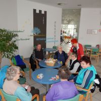 Da niso pozabljeni člani, ki bivajo v domu ob Savinji, so bili ponosni naši člani. Z nasmehom nas je sprejela socialna delavka Mateja, naši člani pa so nas čakali v prijaznem okolju, domski kavarni. Že ob vstopu v prostor smo občutili, da smo prišli med domače ljudi, med prijatelje. Člani so povedali, da so z bivanjem zelo zadovoljni, saj se prijazno osebje trudi, da se dobro počutijo, da se počutijo domače.